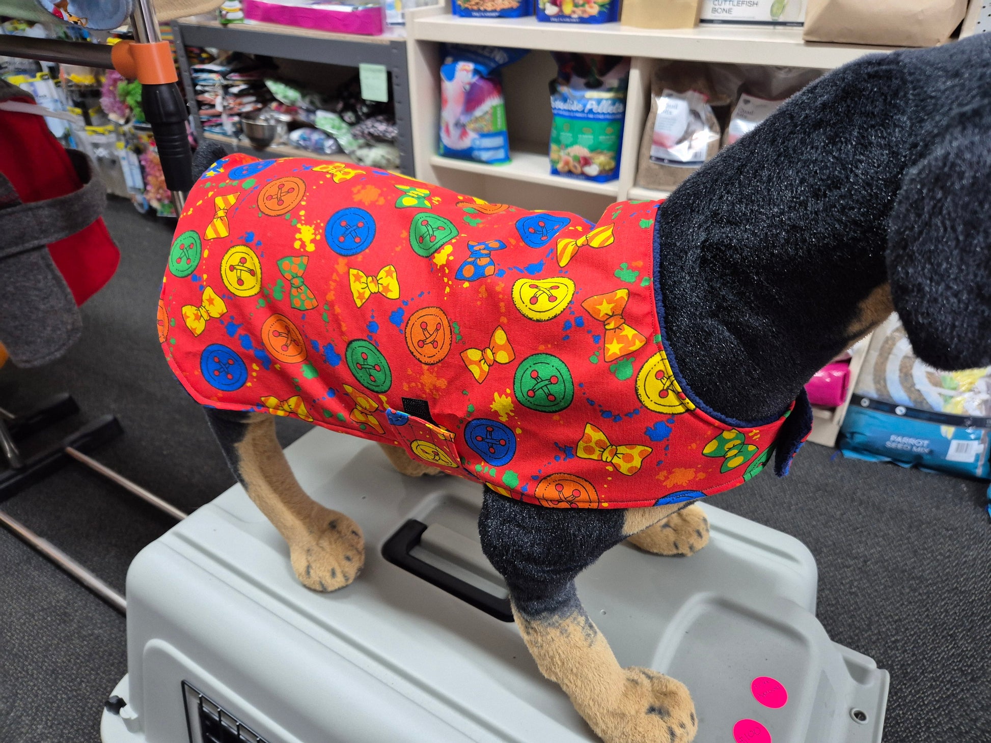 Limited edition coat from Kashs Closet. Cotton outer with fleece lining. Velcro straps on Neck and waist make it adjustable.