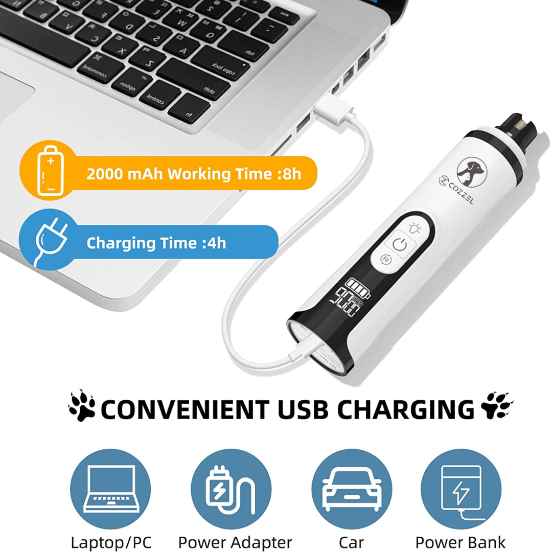 Easy to use & Rechargeable: Cordless design and lightweight body make it easier to control. Make you comfortably trim the puppy’s nail. This dog nail electric file comes with a USB cable for charging. It can last 8 hours after a 4.5-hour full charge. Enough for trimming.