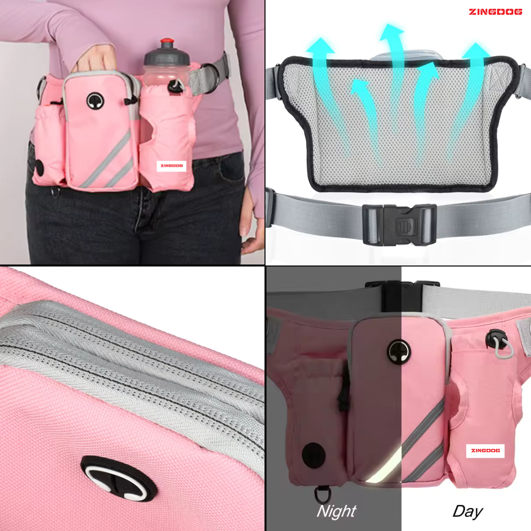Convenient Multi-Pocket Waist Pouch: Keep all your essentials organised with the integrated waist pouch fanny pack. Equipped with multiple pockets for your phone, keys, and a dedicated dog poop bag dispenser, plus a built-in water bottle holder, it’s the perfect accessory for any outdoor excursion.
